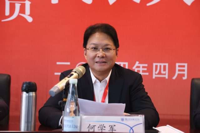 校党委书记何学军在第三届教职工代表大会第一次会议上致开幕辞,并在三届一次“双代会”上发表“强化民主管理、促进融合发展,奋力书写中国式现代化职教新篇章”的主旨讲话。他对与会代表们各抒真知灼见、共谋发展良策表示充分肯定。他指出,2024年是中华人民共和国成立75周年,是全面完成“十四五”规划目标任务的关键之年,是争创国家高水平高职学校的赶考之年,是学校融合发展深化之年。就贯彻落实好本次会议精神,抓好2024年学校各项工作,他提出要深化“一融双高”,推动高质量发展走在前;坚持立德树人,全面提升人才培养质量;促进融合发展,增强职业教育适应性和吸引力;强化民主治理,汇聚融合发展强大动力;完善评价改革,树立践行正确政绩观。他号召全体教职工紧紧围绕学校二次党代会确定的“三步走”战略目标,以“功成不必在我”的境界和“功成必定有我”的担当,知难而进、踔厉奋发、勇毅前行,创造融合发展新成就,续写南京科院新辉煌,向历史和师生交出满意的国家“双高”“赶考”新答卷!
