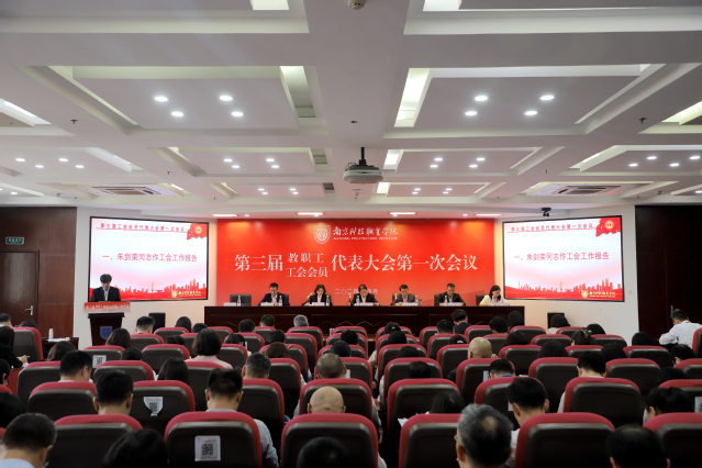 4月21日至22日,南京科技职业学院第三届教职工暨工会会员代表大会第一次会议在学校四楼报告厅召开。全体校领导和来自各二级学院、单位的145名教代会代表、60名工代会代表及列席代表参加了会议。江苏省省直机关工会工作委员会刘智勇副主任莅临大会指导。会议由校党委副书记黄华主持。