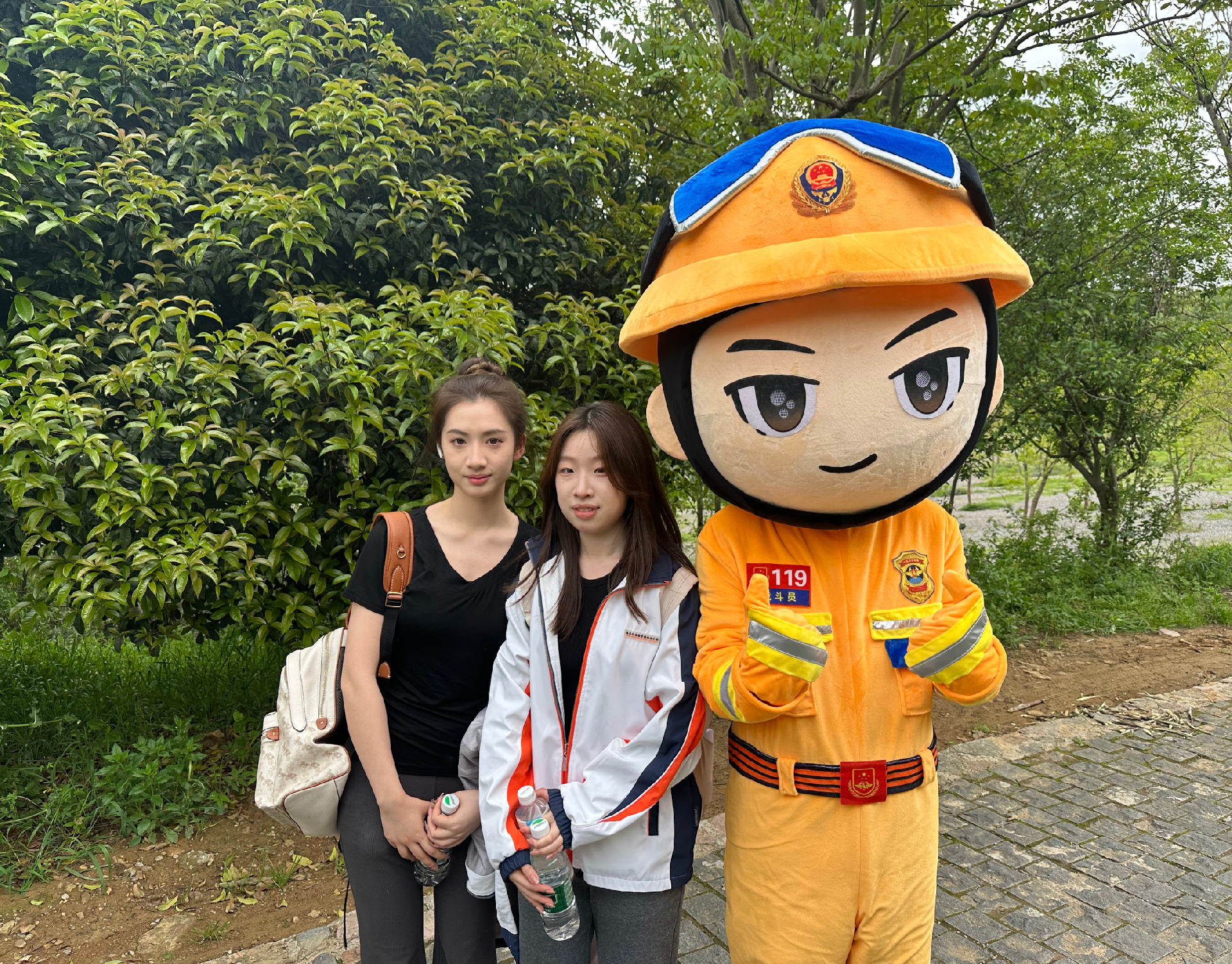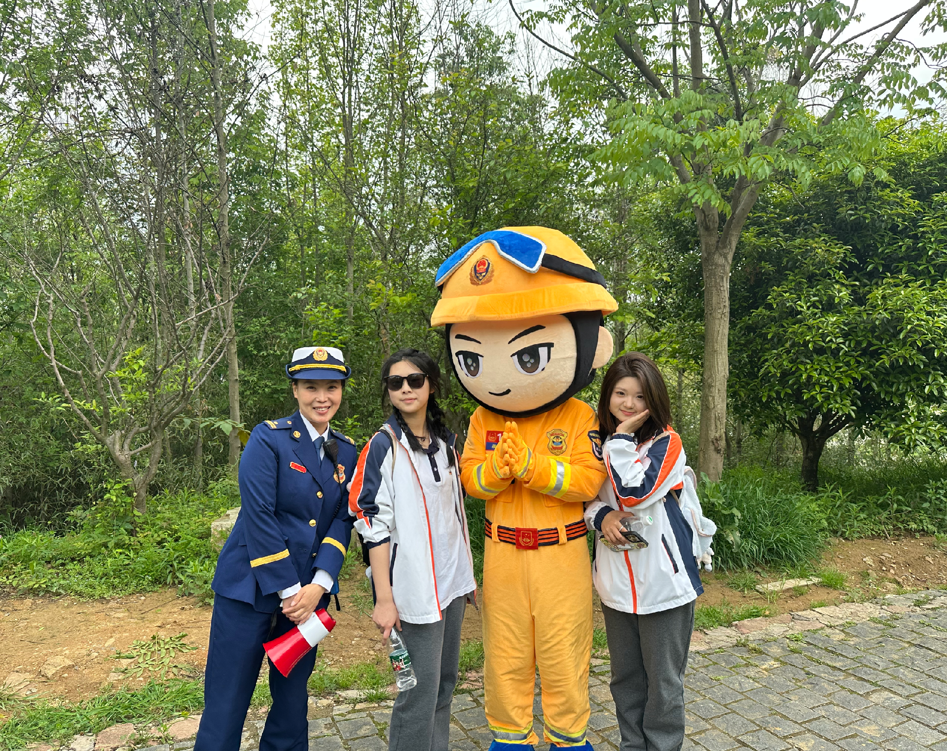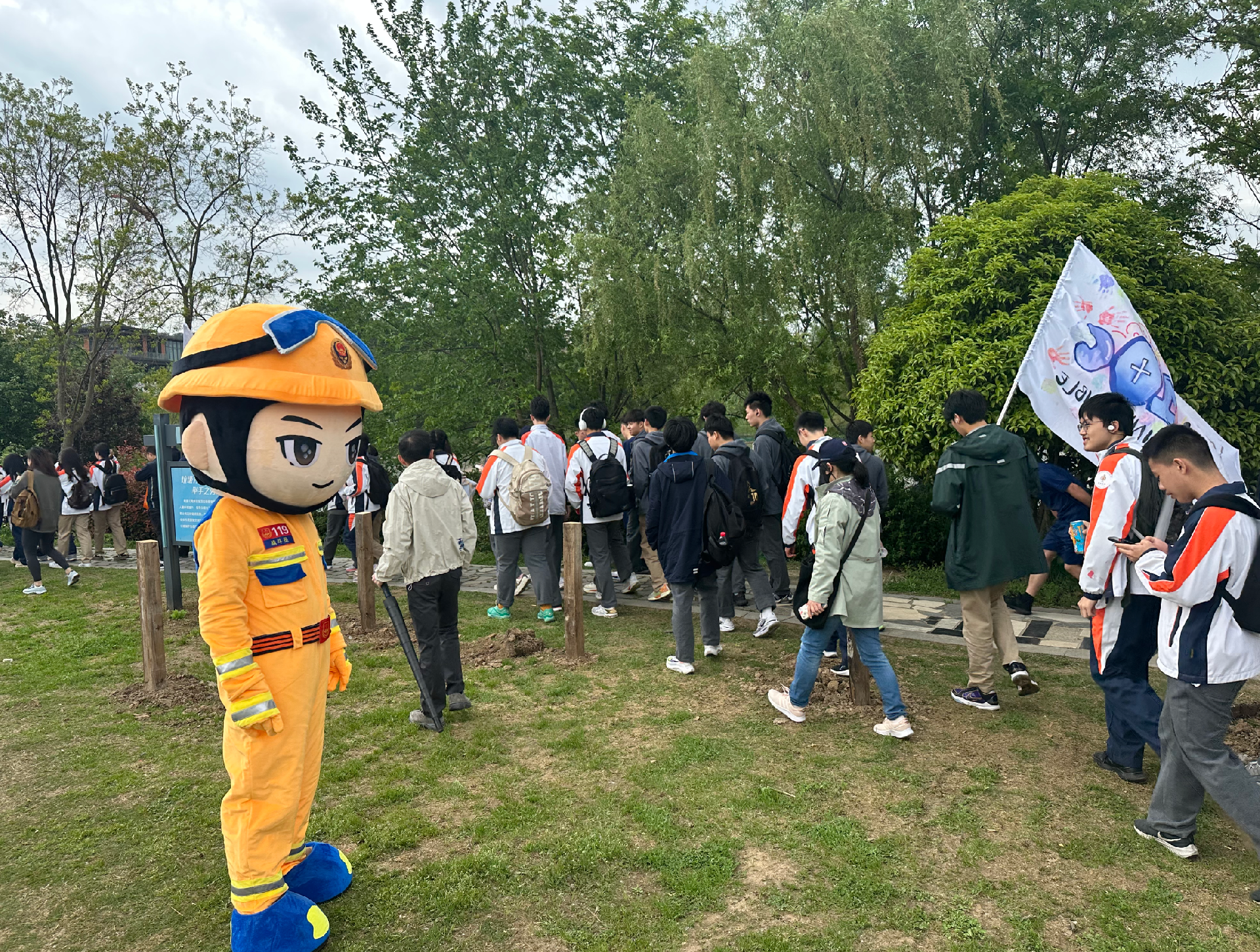 随后“蓝朋友”们陪同全体师生开展长达十公里的徒步,消防人偶在途中和大家积极互动,拍照合影,大大调动了大家的参与积极性,为活动氛围增色添彩。